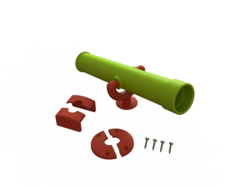 Telescope en plastique coloris rouge et vert pour aires de jeux section carrée. Dimensions ( Lxl) : 31 x 9 cm Diamètre : 6cm Poids : 320 grammes